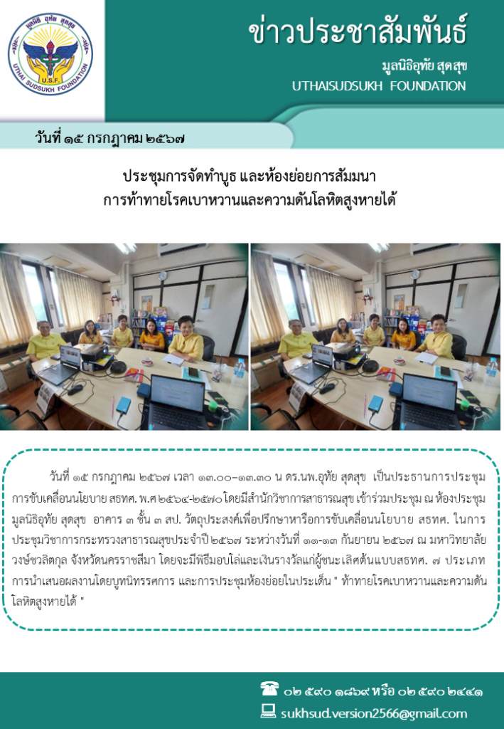 ประชุมการจัดทำบูธ และห้องย่อยการสัมมนาการท้าทายโรคเบาหวานและความดันโลหิตสูงหายได้ 24/07/2024 neeranoot rodthiang 0 จำนวนผู้เข้าชม : 83