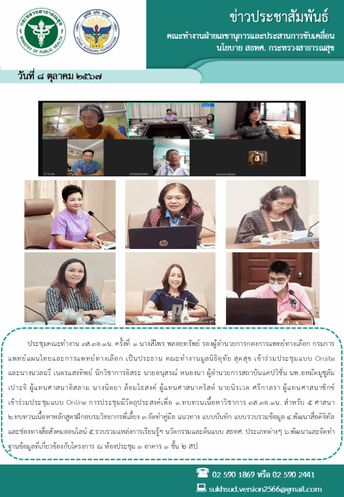 ประชุมคณะทำงาน 3ส.3อ.1น. ครั้งที่ 1 นางสีไพร พลอยทรัพย์ รองผู้อำนวยการกองการแพทย์ทางเลือก กรมการแพทย์แผนไทยและการแพทย์ทางเลือก เป็นประธาน 08/10/2024 neeranoot rodthiang 0 จำนวนผู้เข้าชม : 84